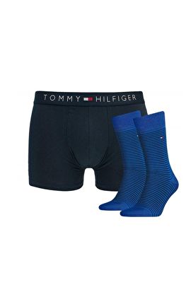 Klasyczne męskie bokserki z wygodnej bawełny. W pasie miła w dotyku guma z logo marki Tommy Hilfiger. W zestawie bokserki i jedna para skarpetek w rozmiarze uniwersalnym.