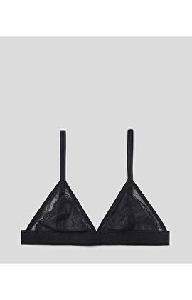 Biustonosz soft marki Karl Lagerfeld w kolorze czarnym. Bez fiszbin. Model ozdobiony koronką. Posiada regulowane ramiączka.