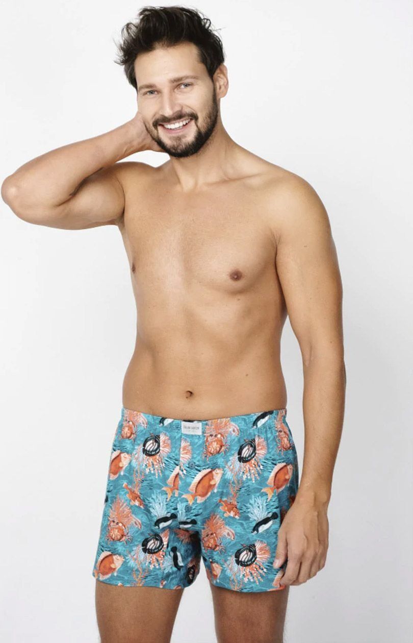 Bokserki męskie Ocean wyprodukowane zostały w 100% z bawełny, zapewniając komfort i wygodę. Dzięki swoim właściwościom bielizna jest bardzo przyjemna i przewiewna. Naturalny materiał gwarantuje antyalergiczne właściwości. Uszyte zostały z materiału z nadrukiem podwodnego świata. Całość ma bardzo przyjemny i typowo wakacyjny charakter. Jest idealną propozycją dla Panów na okres wiosenno-letni. Dostępne w rozmiarze od M do XXL.