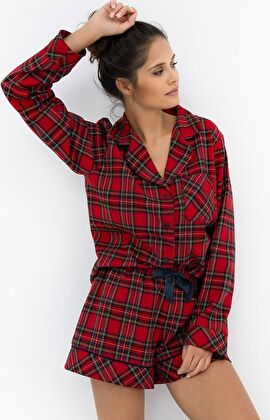 Sensis rozpinana piżama damska w kratę Cynthia to idealne połączenie klasyki i wygody. Wykonana z wysokiej jakości, miękkiej bawełnianej flaneli, zapewnia komfort noszenia i przyjemne ciepło w chłodniejsze wieczory. Klasyczny czerwony wzór w kratę dodaje jej ponadczasowego charakteru i stylu.