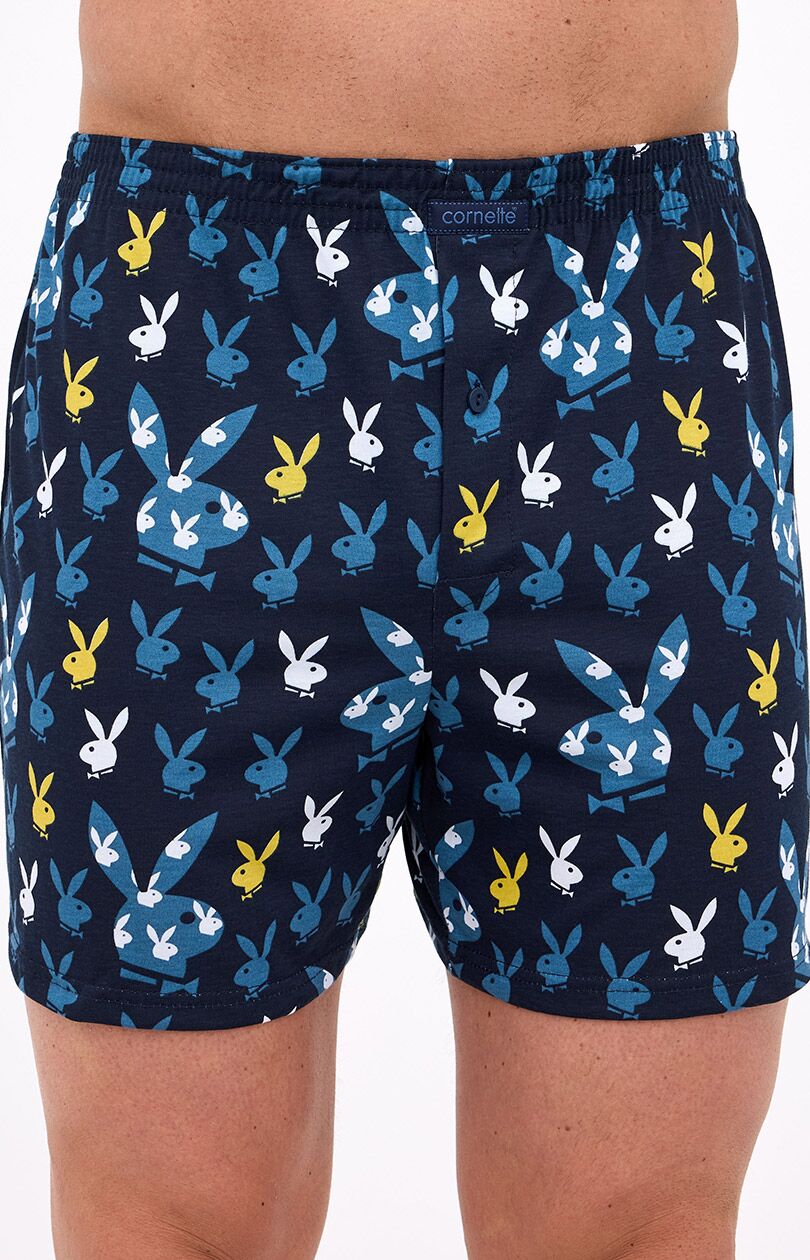 Ciemnogranatowa tkanina została ozdobiona oryginalnym nadrukiem w królicze głowy - motyw zabawny, a jednocześnie estetyczny i dopracowany graficznie. Bunnies 001 to propozycja dla mężczyzn, którzy lubią bieliznę z charakterem - komfortową, ale też z nutą indywidualnego stylu.